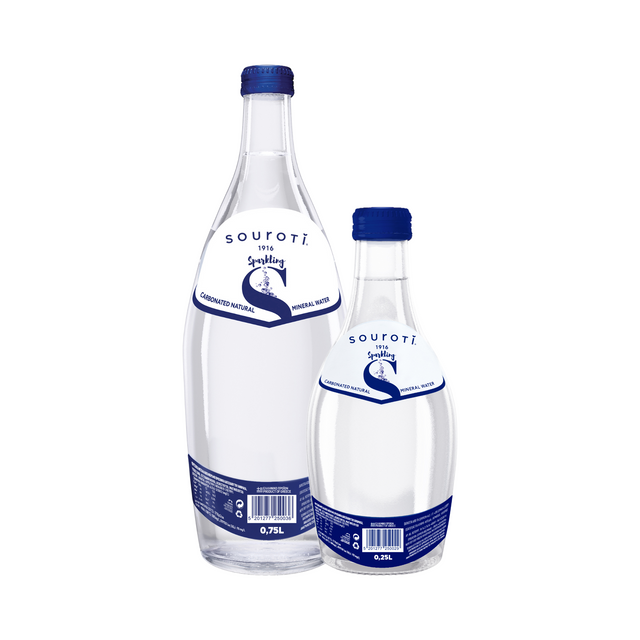Souroti Carbonated Natural Mineral Water - 12 x 750 ml (By the Case) / Glass is backordered and will ship as soon as it is back in stock.